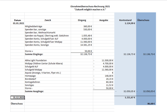 Einnahme-Überschuss-Rechnung 2021