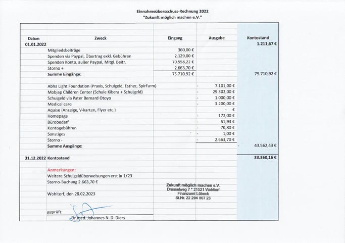 Einnahme-Überschuss-Rechnung 2022